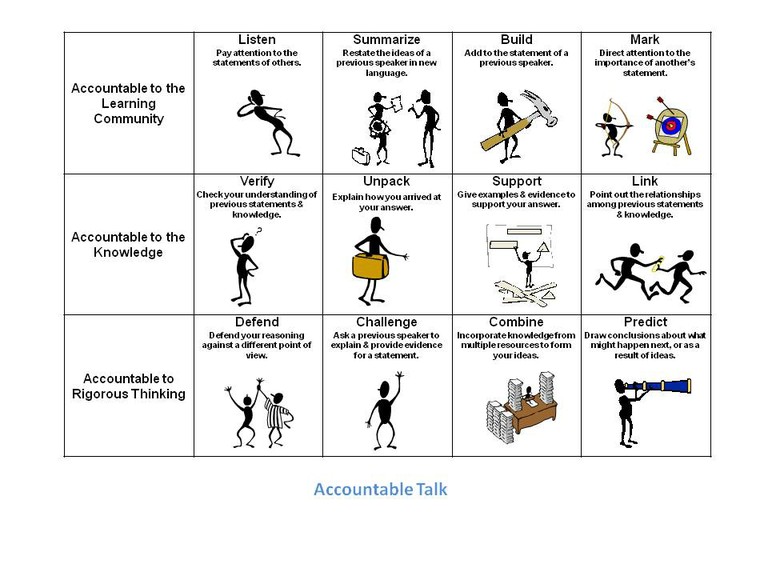 For those interested in taking advantage of Accountable Talk in their classrooms, the Sourcebook as well as these stems and these Accountable Talk Cards may prove helpful.